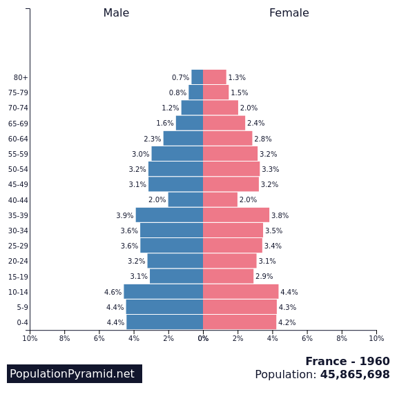 Population Pyramid in Chile today is similar to France. In 1960, the differences were huge.