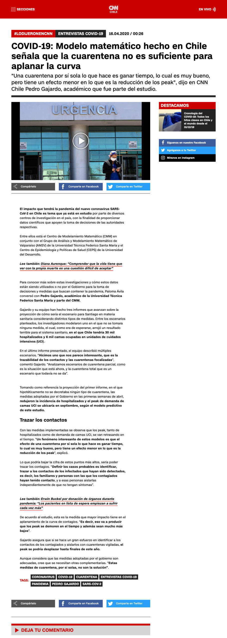 En la nota se alude al trabajo en torno a COVID-19 del Centro de Modelamiento Matemático y aparece Pedro Gajardo, académico USM e investigador asociado externo del CMM.