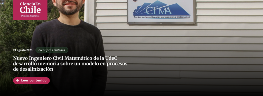 En su trabajo de investigación, explica Sergio, “se abordó un problema enmarcado dentro del Proyecto Anillo ‘dsalt’ (Matemática Computacional para Problemas de Desalinización, ANID-ACT210087), dirigido por Ricardo Oyarzúa, de la Universidad del Bio-Bio. De hecho, debido a los efectos físicos en un proceso de desalinización, tiene mucho sentido poder estudiar cómo interactúan la concentración y la temperatura de un soluto que está inmerso en un fluido que se mueve a través de un medio poroso. Sin embargo, después de esto, uno tiene que empezar a agregarle más parámetros y eventualmente coeficientes a las ecuaciones para crear un ambiente aún más realista”.