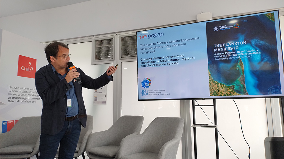 En esta Cumbre de Biodiversidad, el proyecto franco-chileno, liderado por Alejandro Maass en el CMM, y desarrollado en colaboración con la Fundación Tara Océan y la Universidad de Nantes, mostró cómo la integración del modelamiento matemático, la biología de sistemas y la teledetección permite monitorear la diversidad y funcionalidad de los microorganismos del océano.