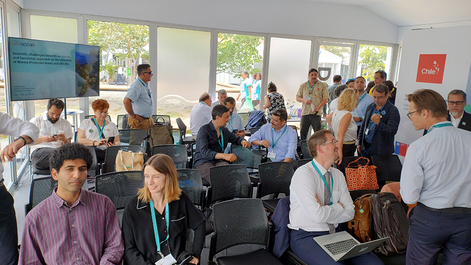 El encuentro desarrollado el 29 de octubre en el Pabellón de Chile, reunió a representantes del gobierno chileno y de agencias de financiamiento científico de Francia, como el Fondo Francés para el Medio Ambiente Mundial (FFEM). Además, contó con la participación de un panel de investigadores jóvenes de instituciones de ambos países, quienes presentaron ideas sobre herramientas y enfoques innovadores para la protección del océano.