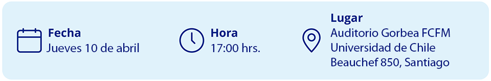 El evento se realizará el jueves 10 de abril del 2025, a las 17:00 horas, en el Auditorio Gorbea de la Facultad de Ciencias Físicas y Matemáticas (FCFM) de la Universidad de Chile, ubicada en Av. Beauchef 850, Santiago.