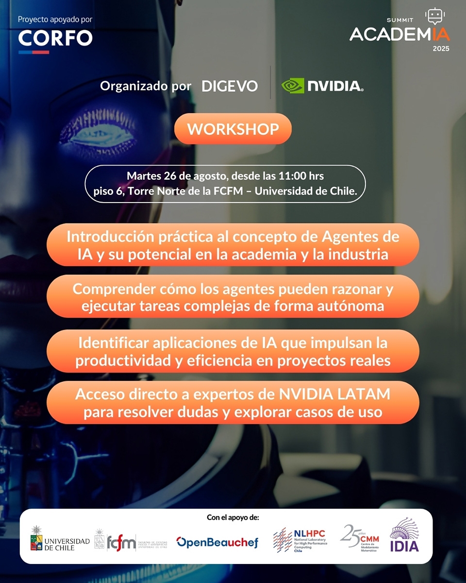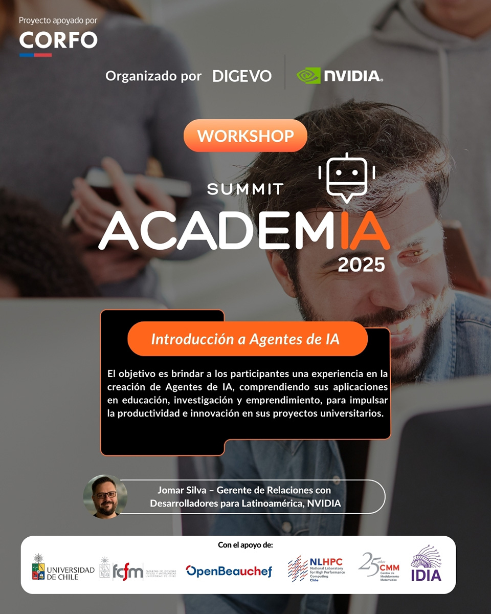 Workshop teórico–práctico introductorio, liderado por especialistas de NVIDIA, donde los participantes conocerán los Agentes de IA.