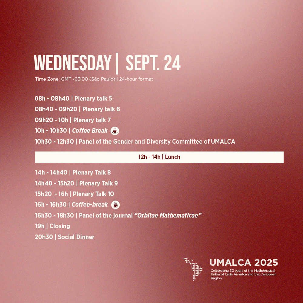 Los días 23 y 24 de septiembre de 2025, la Universidad Estatal de Campinas (UNICAMP) será sede de un evento especial que conmemora los 30 años de existencia de la UMALCA (Unión Matemática de América Latina y el Caribe).