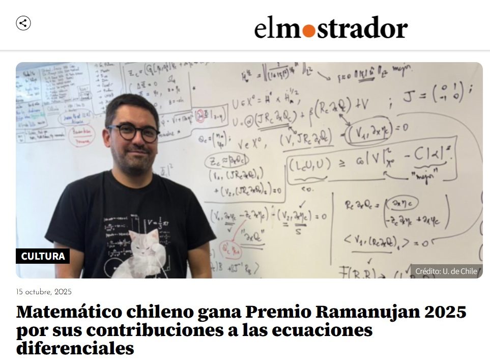 Reporte sobre investigador chileno galardonado con el Premio Ramanujan 2025 por aportes en ecuaciones diferenciales.